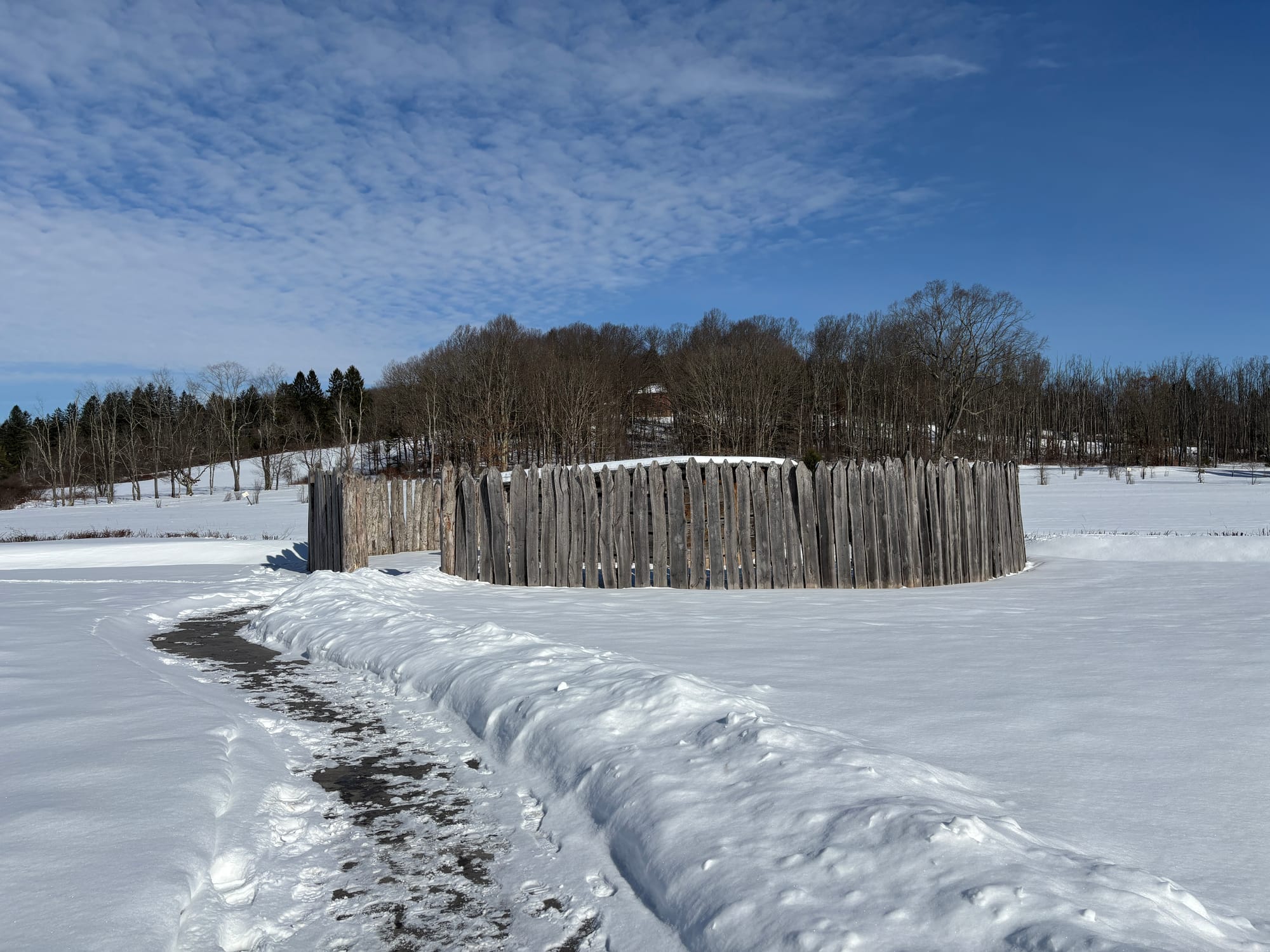 This is the first truly snowy winter I feel we’ve had around here since I moved back from Montana in 2020 - and the layer of dust on my snowshoes stood as a testament to that. I cradled my gear and walked down the cleared path to the reconstructed fort and considered my options. Not wanting to disturb the picturesque snowy blanket over the meadow I lashed my snowshoes to my feet, turned my back on the fort, and made my way on a trail uphill to the Braddock Trace - then uphill some more to the road that leads to the picnic area.